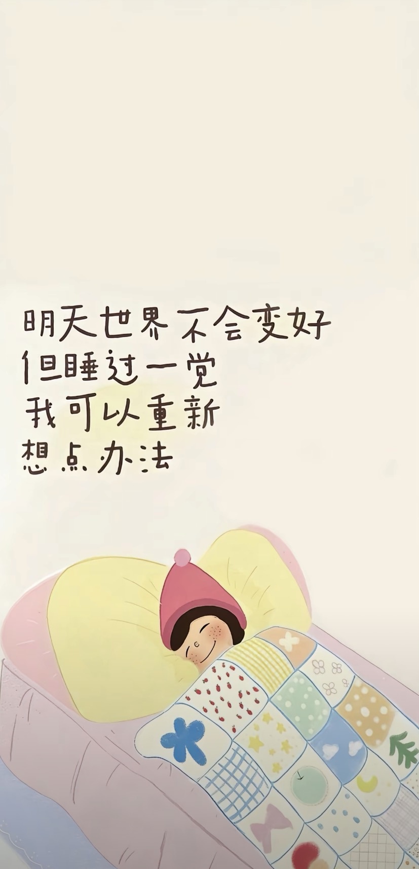 可爱治愈手绘卡通带字壁纸/明天世界不会变好 但睡过一觉 我可以重新想办法