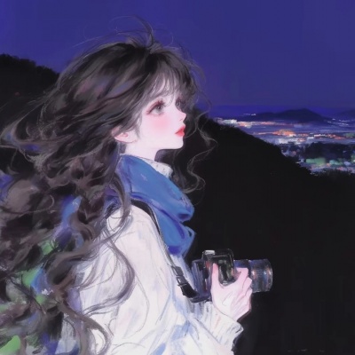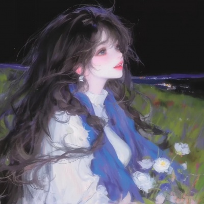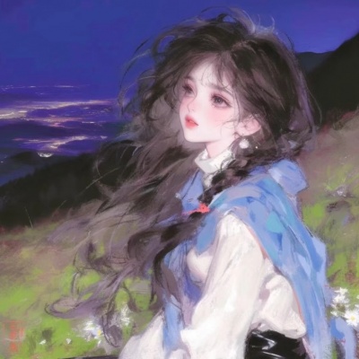 唯美手绘动漫女头|蓝白色系|落日和晚风,自由远比爱意更重要