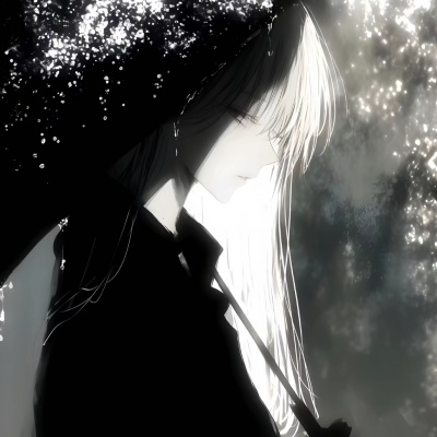 唯美黑白动漫女生头像/总是词不达意.